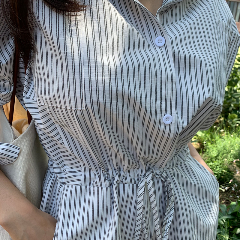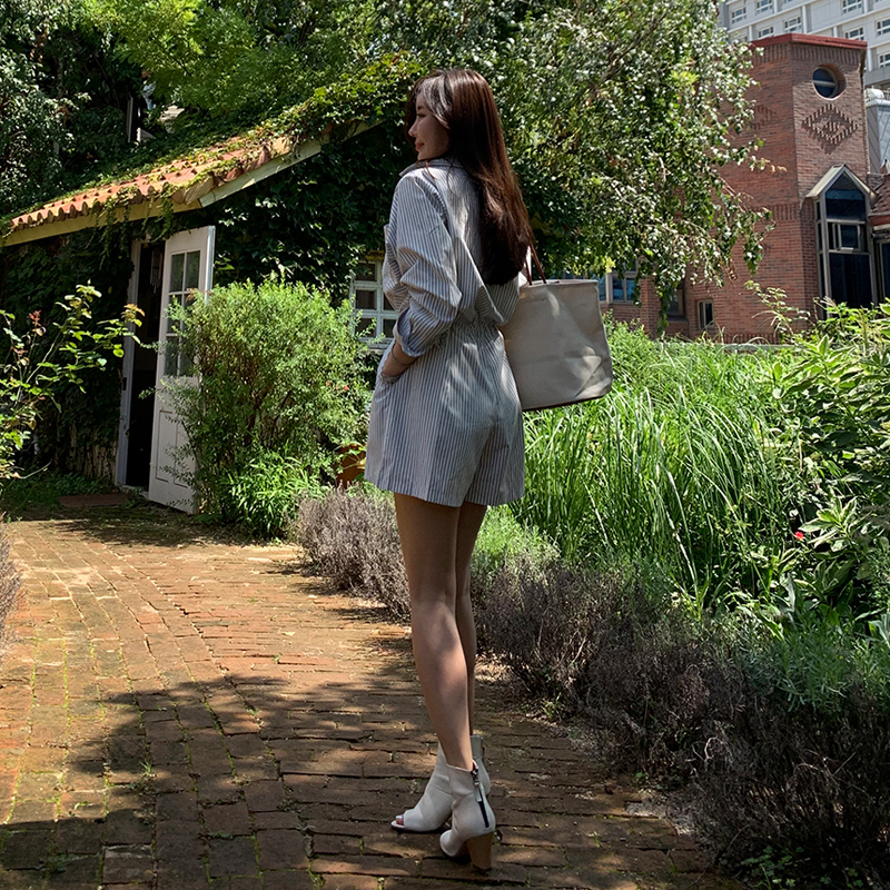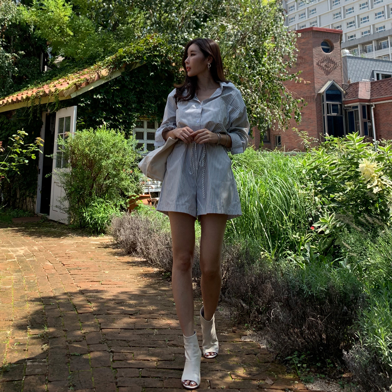 스트라이프 숏 점프수트 TJT890729