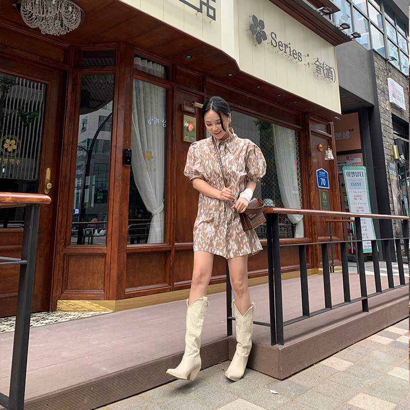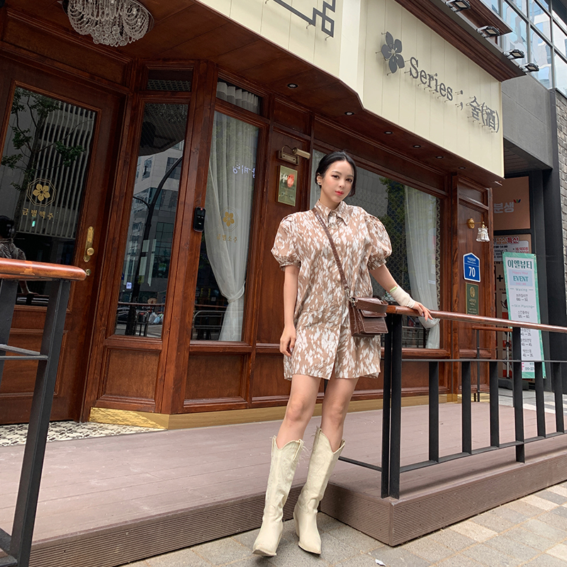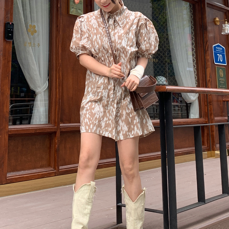 프린팅 퍼프 원피스 IAM891485