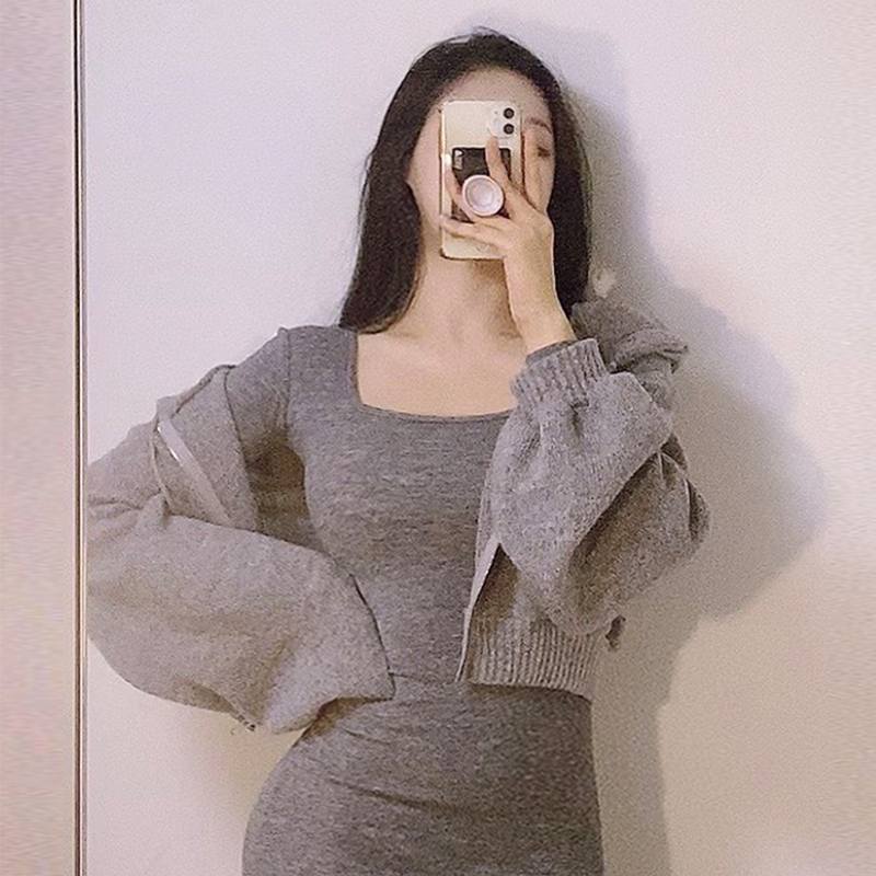 스퀘어넥 사이드슬릿 슬림 핏 가을 미디 트임 원피스 TTY896058