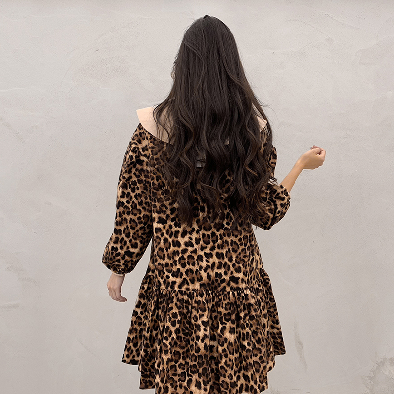 [프리미엄] 호피 카라 미니 원피스 MIN896851
