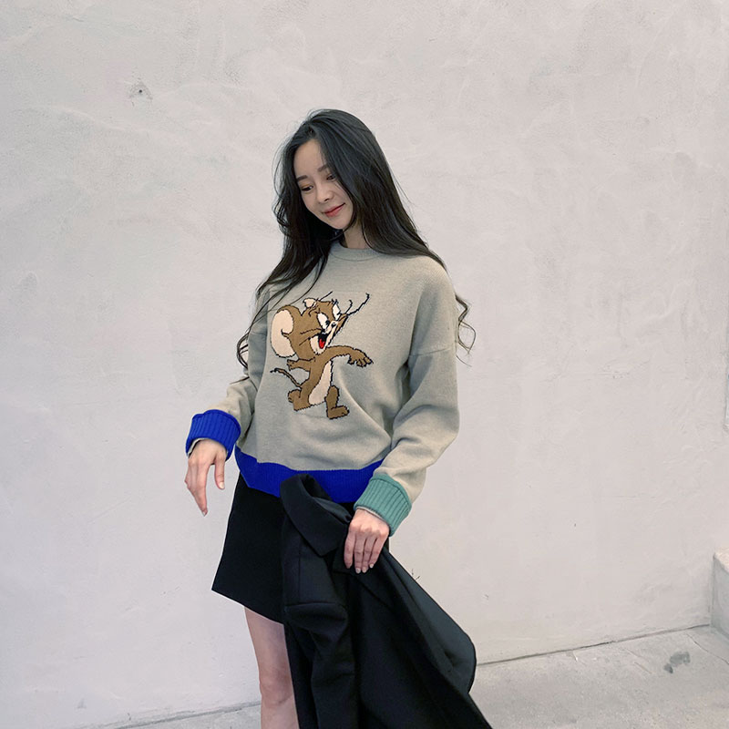 [프리미엄] 제리 배색 소매 포인트 니트 MIN896854