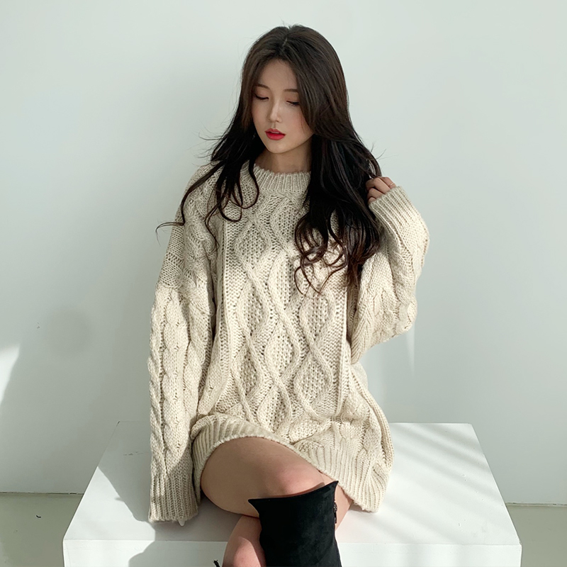 브래드 라운드넥 루즈핏 니트 원피스 DOW897509