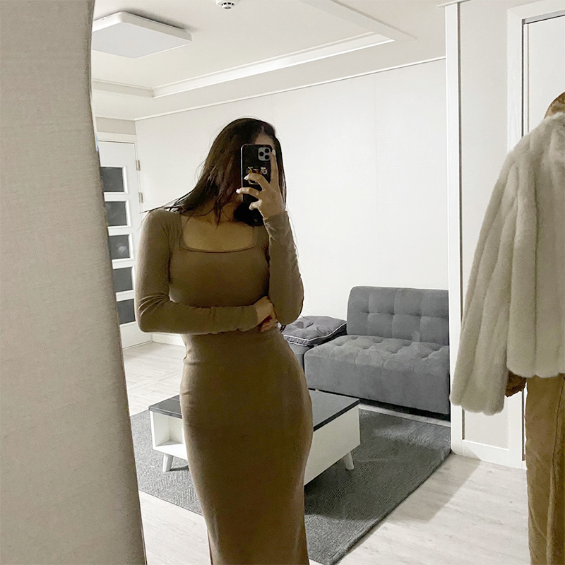 스퀘어넥 사이드슬릿 원피스 TJS897775